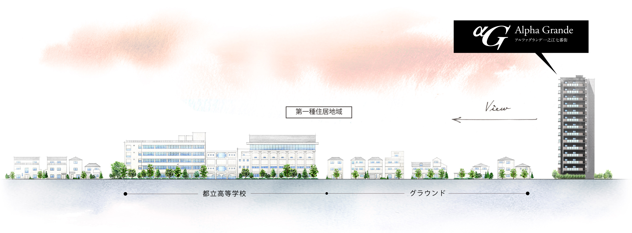 目の前に第一種住居地域が広がる立地の開放感を、