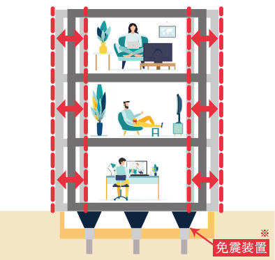 免震とは 地震の揺れを軽減し、被害を抑制します。
